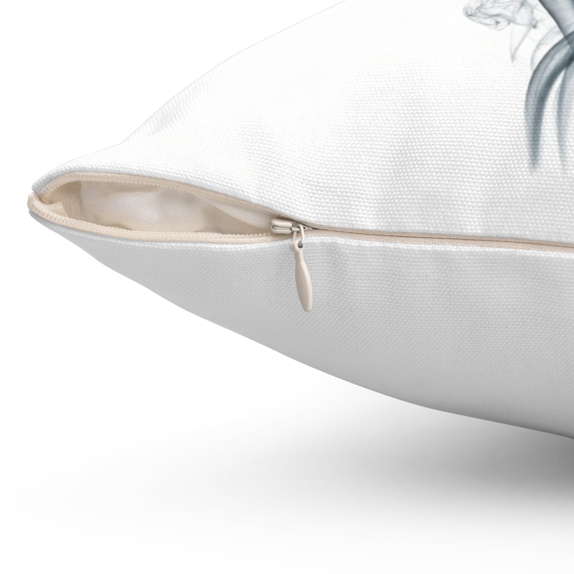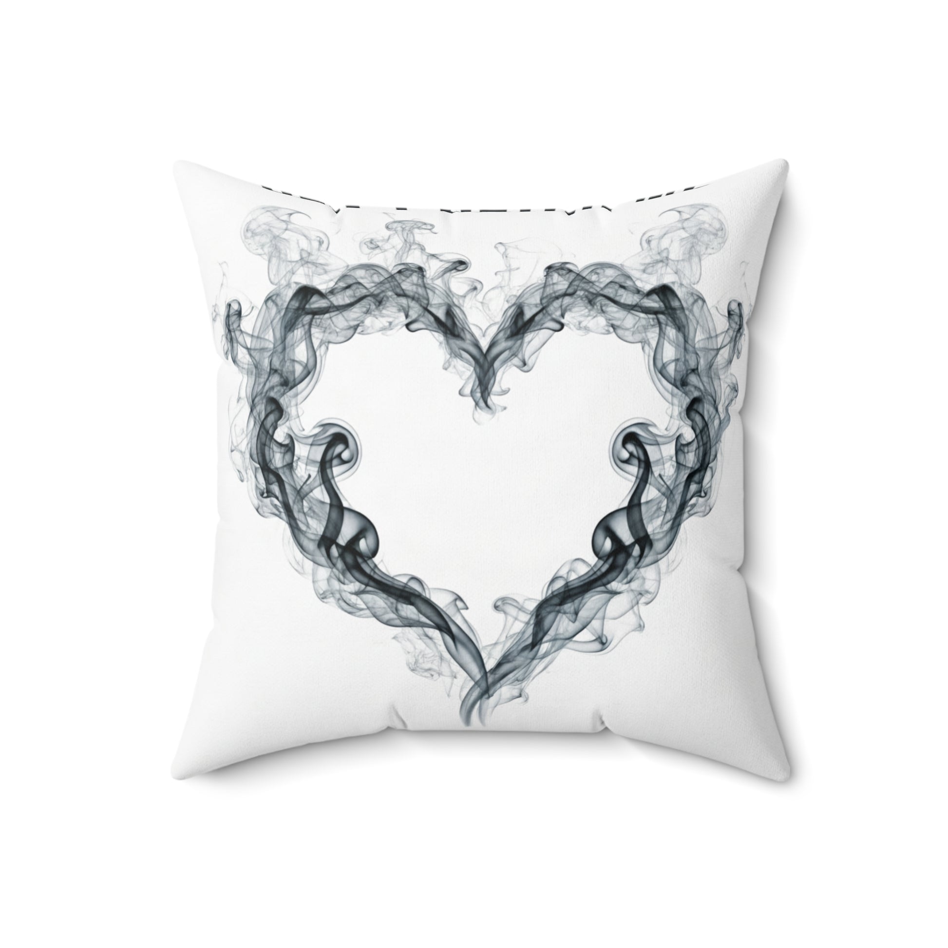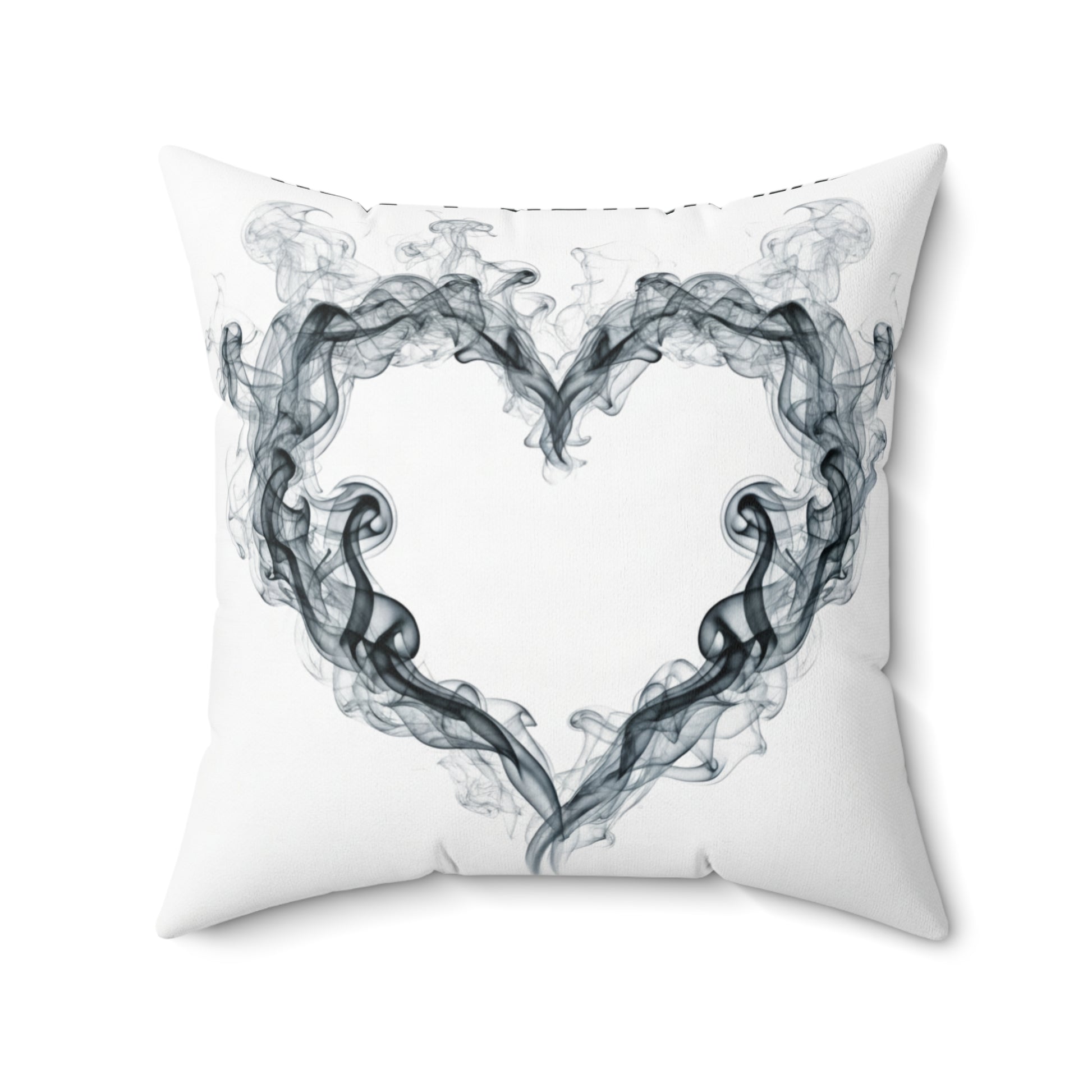 Soft, sculpted smoke curls into a delicate heart on a clean white square pillow. The monochrome design feels calm and a little mysterious — like quiet moments by a window with a cup of tea, or the lingering hush after a candle is blown out. Lightweight spun polyester keeps the cover smooth and wrinkle-free, while the recycled polyester insert is intentionally oversized so the pillow blooms full and plush once assembled. The zipper sits hidden and the art prints on both sides, letting the pattern read equally from every angle. This pillow slips into minimalist, modern, or moody-romantic rooms and brings a subtle, artful statement to sofas, beds, or reading nooks.