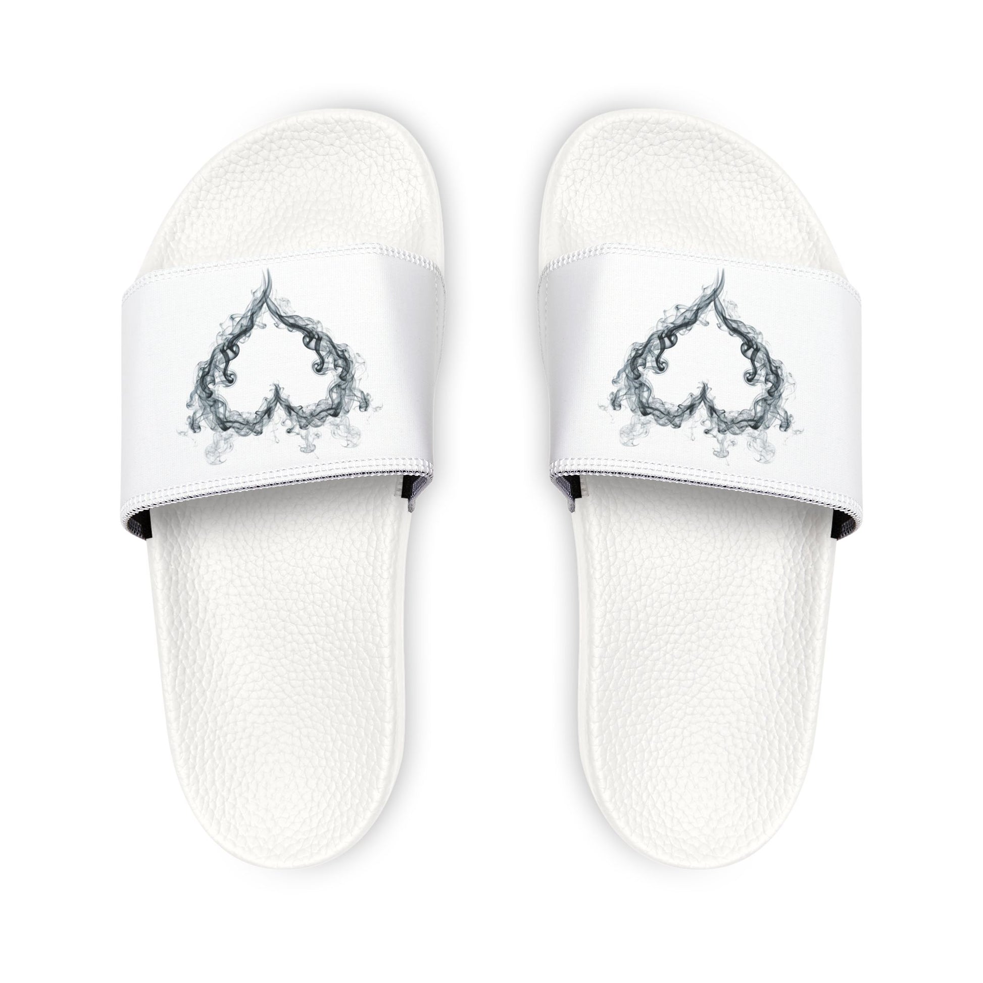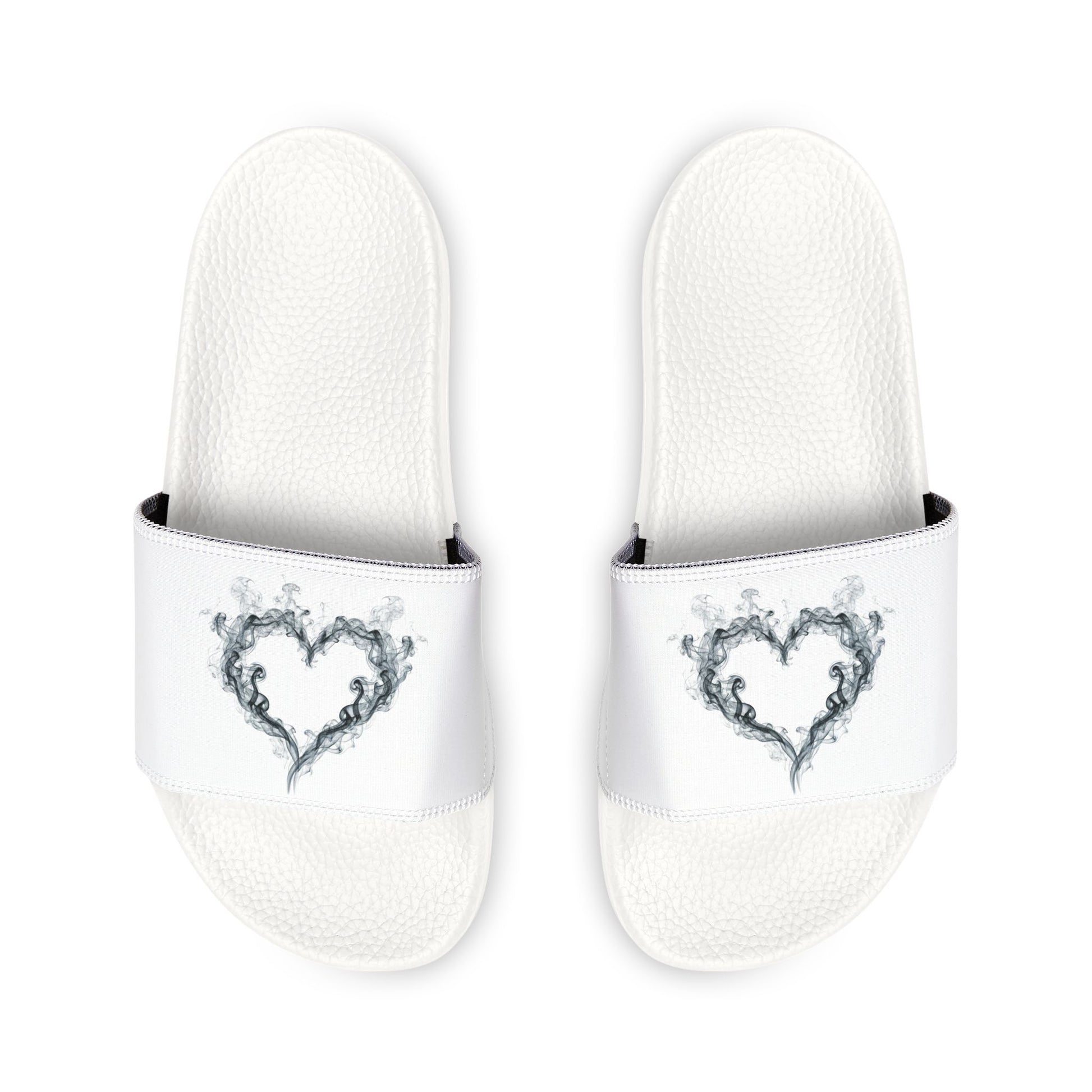 White Youth Slide Sandals with Smoky Heart Graphic