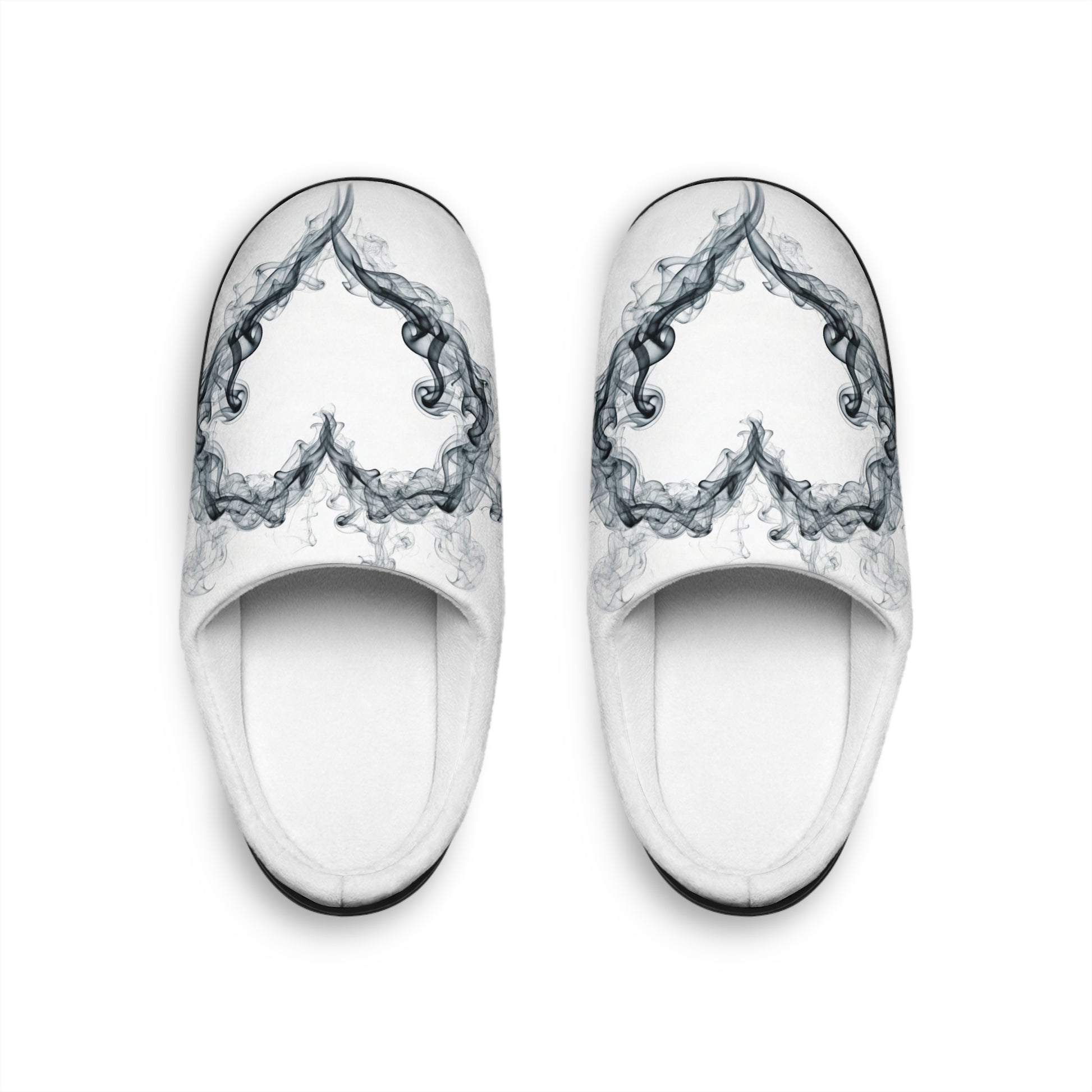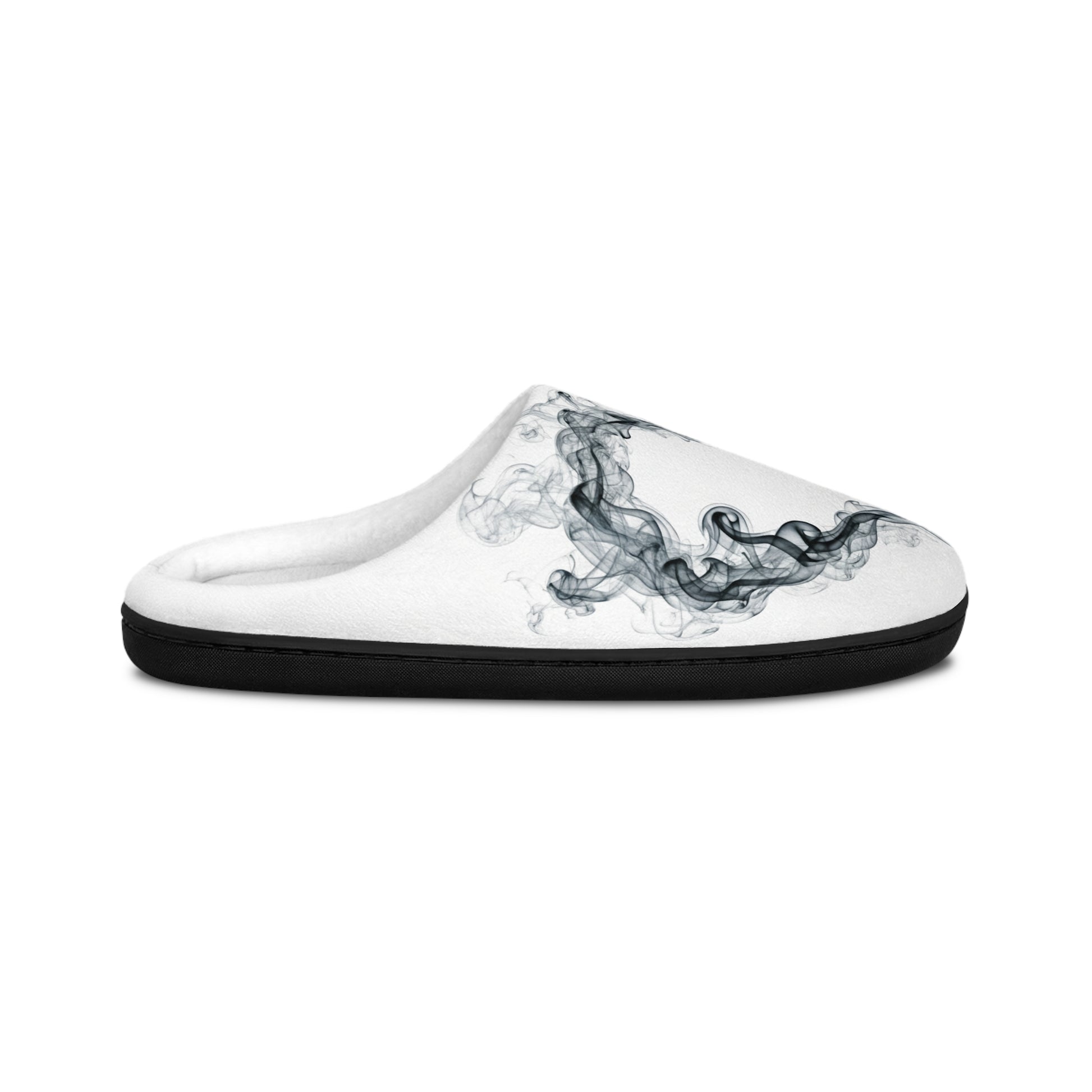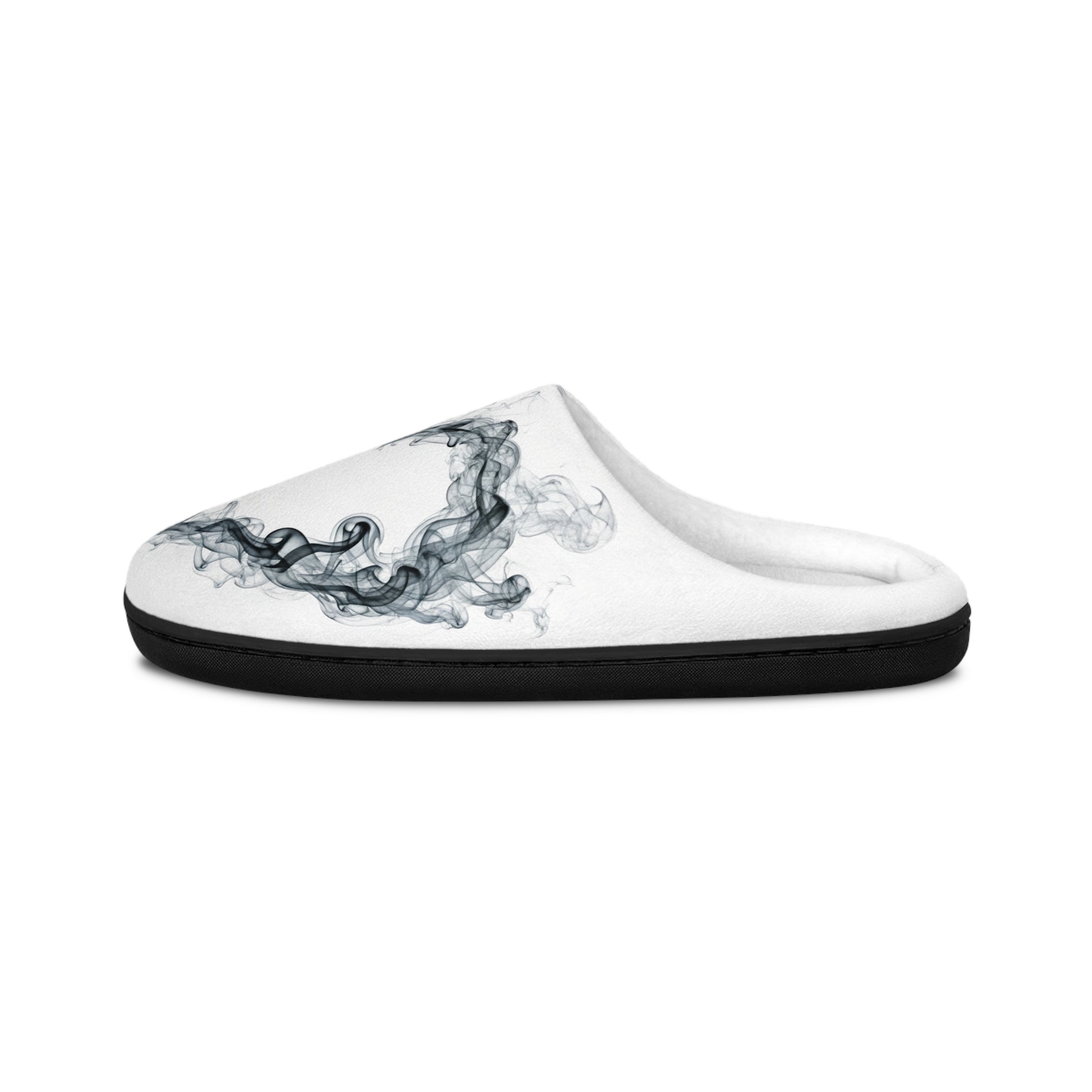 Slide into a quiet, cozy moment with these indoor slippers designed for slow mornings and late-night calm. The soft flannel fleece wraps your feet in warming comfort while a removable insole keeps care simple — pull it out to air or wash and let the slippers feel fresh again. The artful, smoke-like design on a clean white background brings a subtle, modern edge without shouting for attention; it blends easily with loungewear or a relaxed home outfit. The black rubber outsole gives a reassuring grip on hardwood and tile so you can move around the house confidently. Lightweight and low-profile, these slippers are made for home rituals: brewing coffee, reading a chapter, or padding to the window to breathe in the morning light.